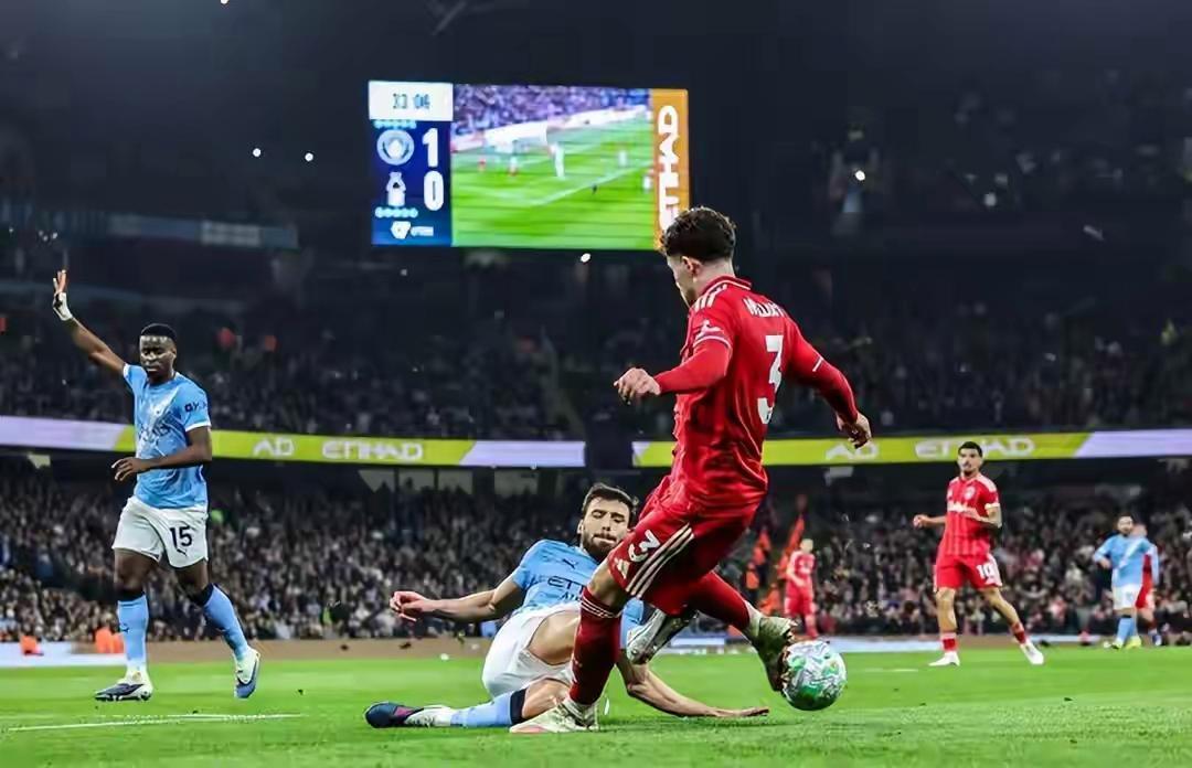 2026年3月5日凌晨,曼彻斯特的夜空依旧被伊蒂哈德球场的璀璨灯光照亮。在这个本该属于蓝月军团继续高歌猛进的夜晚,2025-26赛季英超联赛第29轮迎来了一场焦点之战。积分榜次席的曼城坐镇主场,迎战为保级而战的诺丁汉森林。当主裁判吹响终场哨音时,记分牌上定格的2-2比分,不仅终结了曼城各项赛事的六连胜,也让这场跌宕起伏的较量成为了本轮英超最令人回味的剧本。